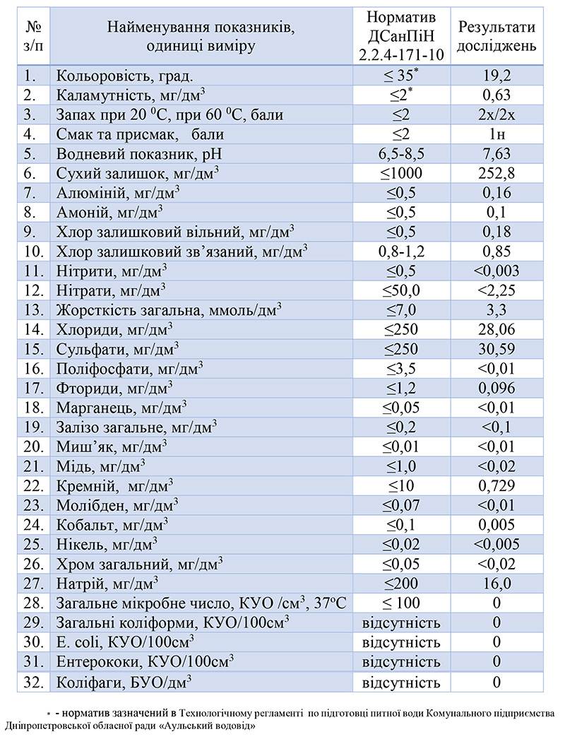 Звіт про якість води за 10.2018 Опубликовано 12.11.201823.01.2019 автор admin Якість питної води перед її надходженням у водопровідну мережу за жовтень 2018 року